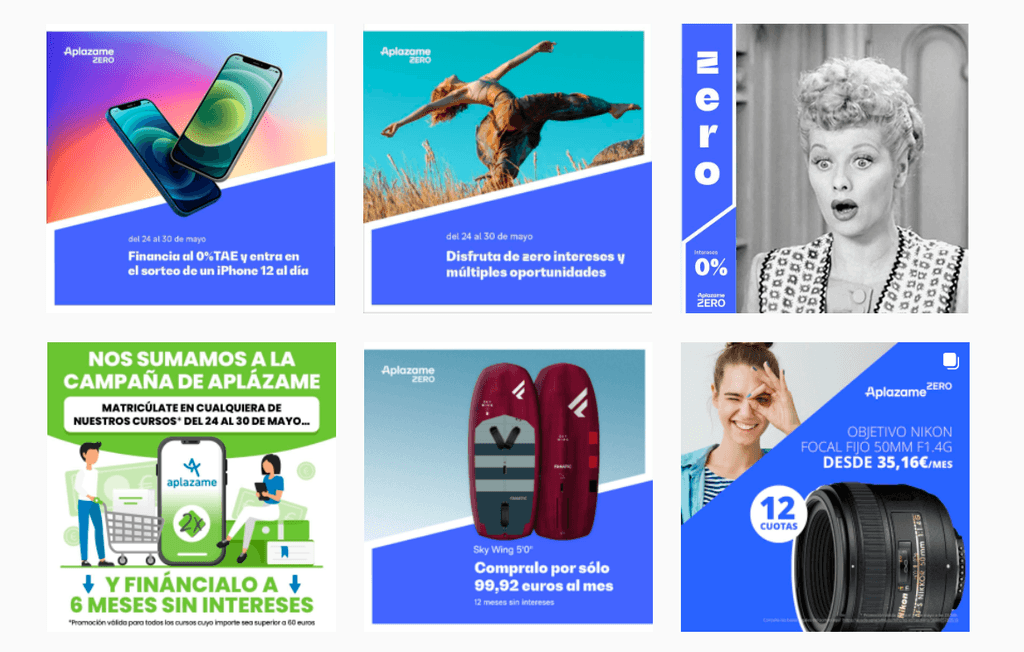 También es destacable que como campaña de marketing, Aplazame Zero se trata de un esfuerzo compartido entre Aplazame que da un fuerte empujón a la campaña en sus redes sociales a través de publicaciones muy dinámicas y atractivas y las tiendas que también se suman a esta viralidad, compartiendo publicaciones con el hashtag #AplazameZero que reúne todo el contenido relacionado con la campaña.