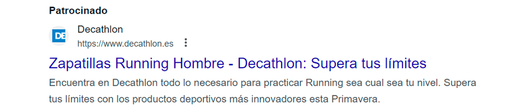 Como este ejemplo de Decathlon donde encontramos 2 títulos, el primero con una keyword “zapatillas running hombre”, y el segundo resaltando la marca y su filosofía “supera tus límites”. Un título compuesto bastante concreto, preciso y atractivo para el target al que se dirige.