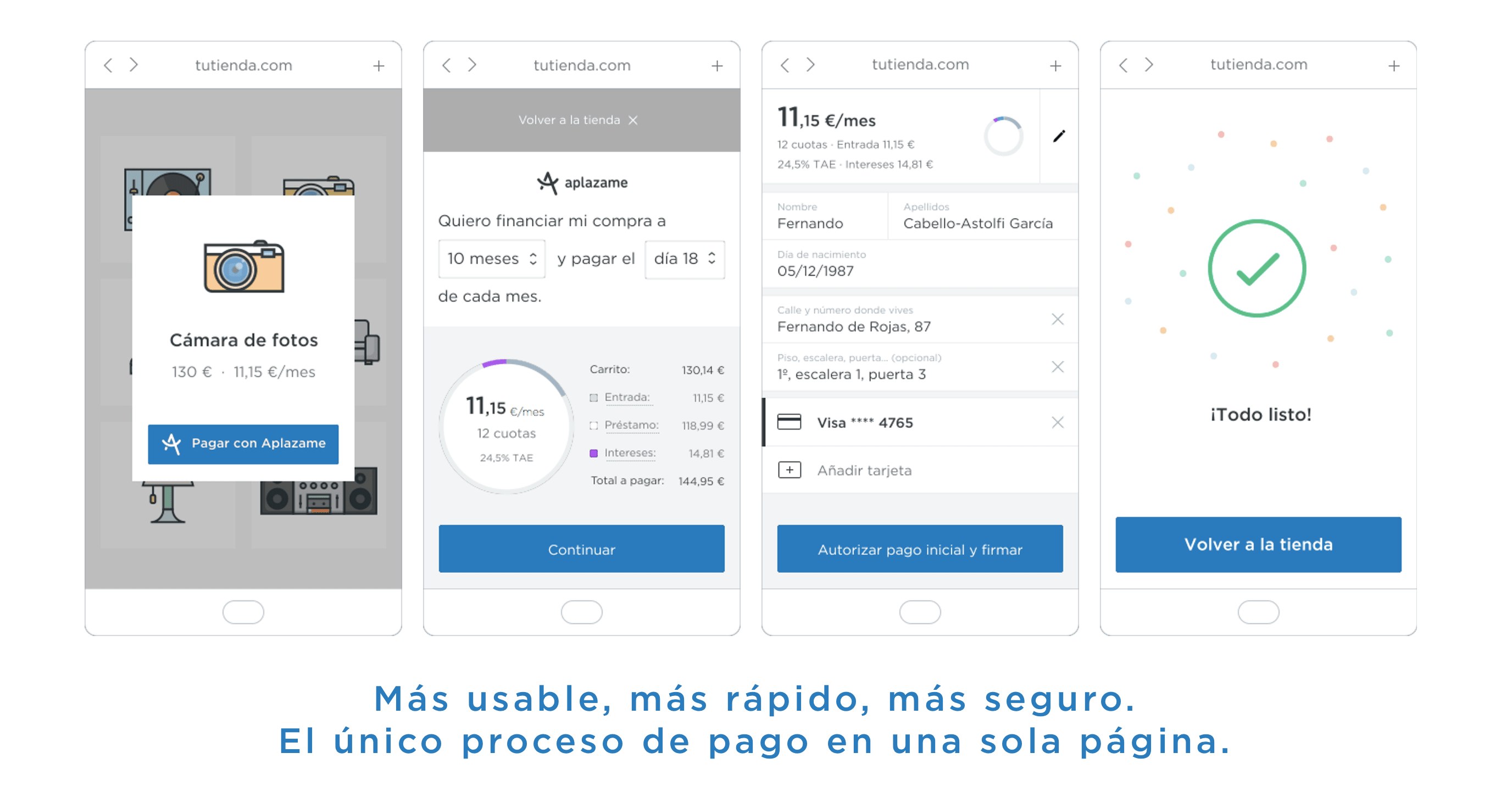 Además, en el proceso de Aplazame no hay letra pequeña ni costes ocultos, por lo que el cliente ve en todo momento lo que va a pagar mes a mes, algo que incentiva la compra.